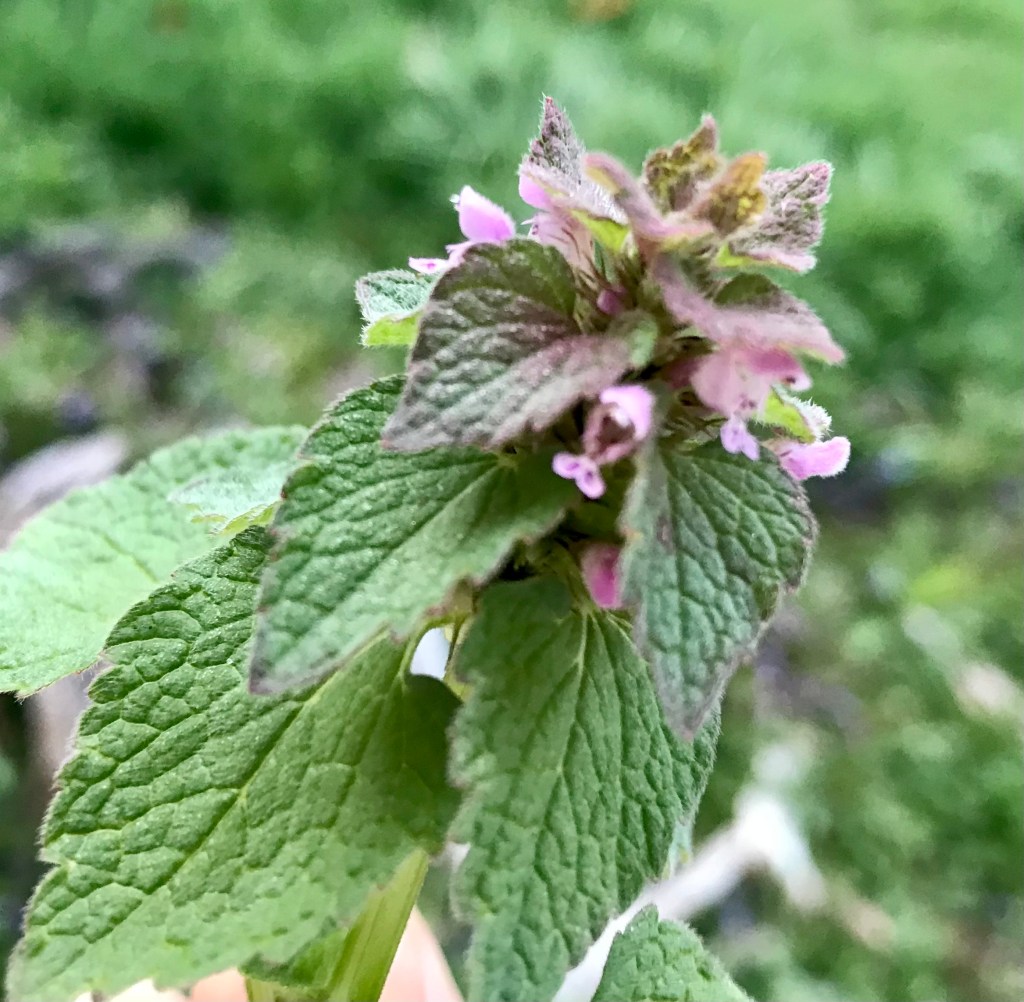 This Easter season, we roasted up a whole leg of lamb, and foraged dead nettles growing everywhere in our flower beds next to the house, as a side dish. They pair well with lamb and mint sauce. Dead nettles are in the mint family, although they taste nothing like mint: they are fairly bland, with a slightly sweet taste, and soak up whatever flavor you cook them with.