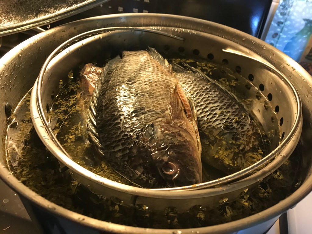 USING THE WHOLE TILAPIA FOR FISH STOCK: (eyeballs and all!)