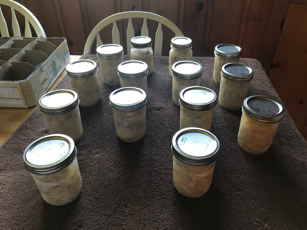 - Poured hot water over the fish and salt, filling each jar to 1″ head space