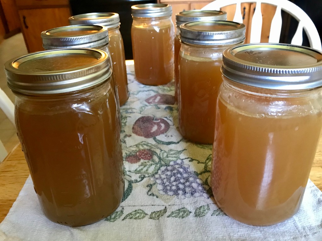 Once cooled off a bit, strain the pieces out of the stock liquid with a flour sack towel or two layers of cheesecloth lining a colander. This is where the straining basket comes in handy, if you have one: simply lift the basket out of the stockpot and set it on top of a large baking pan or bowl to catch the drippings. (Be sure to further strain the drippings with a flour sack towel and/or cheesecloth, so NOTHING is left except stock – you don’t want any chunks of anything in your stock.)