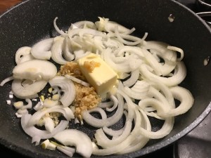 Cook mushrooms, onions and garlic in butter in 10-inch skillet over medium heat, stirring occasionally, until onions are tender; remove from skillet.