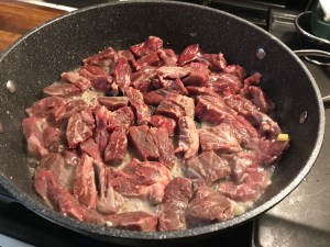 As most of my readers know by now, I love to prepare the family meals from scratch as often as I can. Beef Stroganoff is one of our favorites, although we don’t have it often. Whenever we do, it’s a real treat! We found some cheap cuts of steak on sale at the store last week. (When we eat steaks, it’s usually ribeye, but have you priced them lately?! It’s a no-go for our household at present.) Instead of savoring this cheap steak meat as an actual steak, I cut off all the fat and set it aside, then cut the meat into small strips/chunks in preparation for the beef stroganoff I planned to make later in the week. That same day I prepped the meat, I rendered all the fat pieces in a pan, and hubby ate the cracklin’ left over and the rendered fat went into a jar for later use. (Can you tell we don’t waste anything?!). Because the “rendered fat” is not part of this recipe, I thought I’d give it a side mention here before getting to the actual recipe… so here goes! Enjoy!