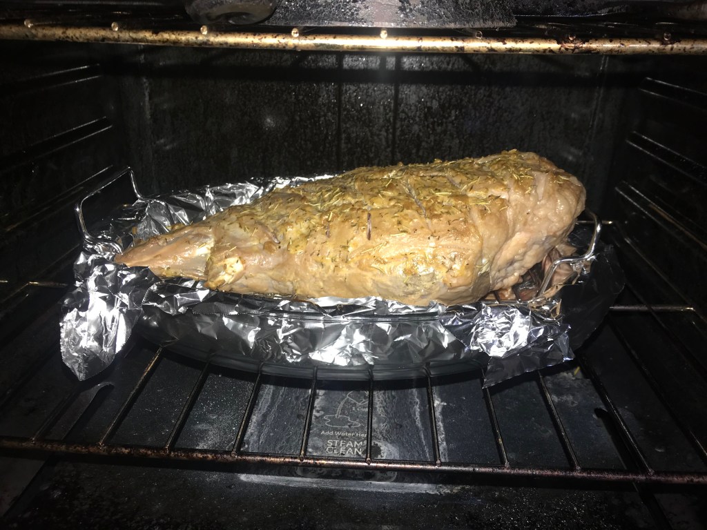 When the oven has preheated, place the lamb into the bottom third of the oven (it might be a good idea to move one of your oven racks before you preheat, so you won’t have to do it after the oven is hot).
