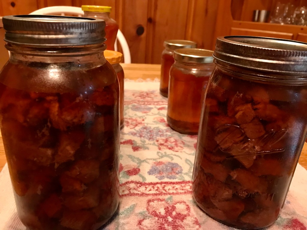 Now prepare clean jars for canning up all that yumminess! Cut the refrigerated lamb into chunks, tightly pack them in jars, cover them with the lamb broth up to 1″ or 1.5″ headspace. Debubble and add more broth if necessary. Any broth left over after filling jars with the leftover lamb/broth mixture, just pour that extra broth all on its own into separate jars, leaving 1″ headspace.