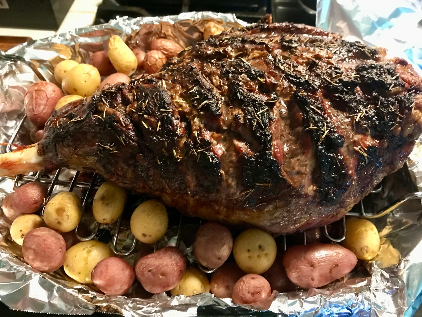 When the oven has preheated, place the lamb into the bottom third of the oven (it might be a good idea to move one of your oven racks before you preheat, so you won’t have to do it after the oven is hot).